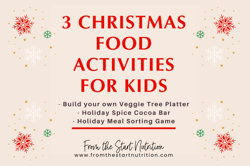 The holiday season is the perfect time to blend creativity, food, and festive fun—especially with little ones! These 3 Christmas food activities for kids are engaging and designed to encourage joyful food exploration through hands-on play (without pressure!). Whether you’re planning for a classroom party, a family gathering, a holiday event, or just a fun activity for kids to do at home, each activity supports building fine-motor skills, feeding independence, and a positive relationship with food.
