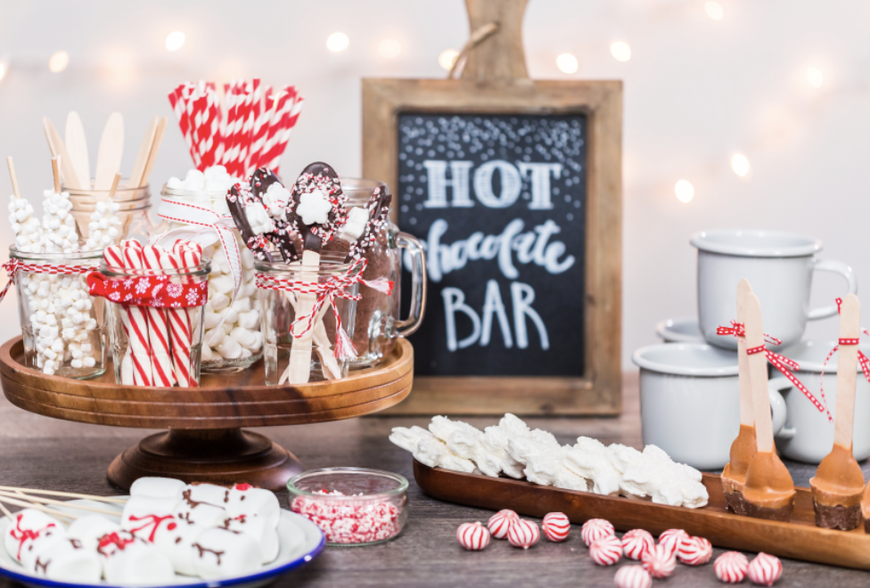 Find the printable guide for Holiday Spice Cocoa Bar on page 3 of the Christmas Food Activities for Kids PDF.